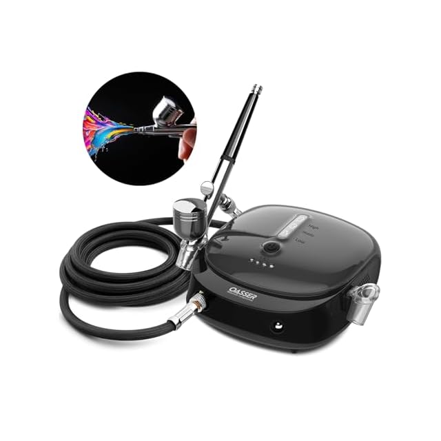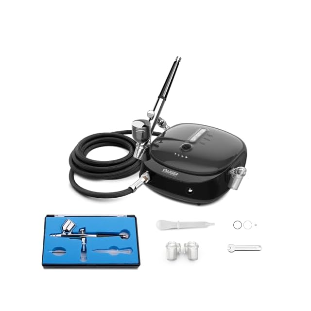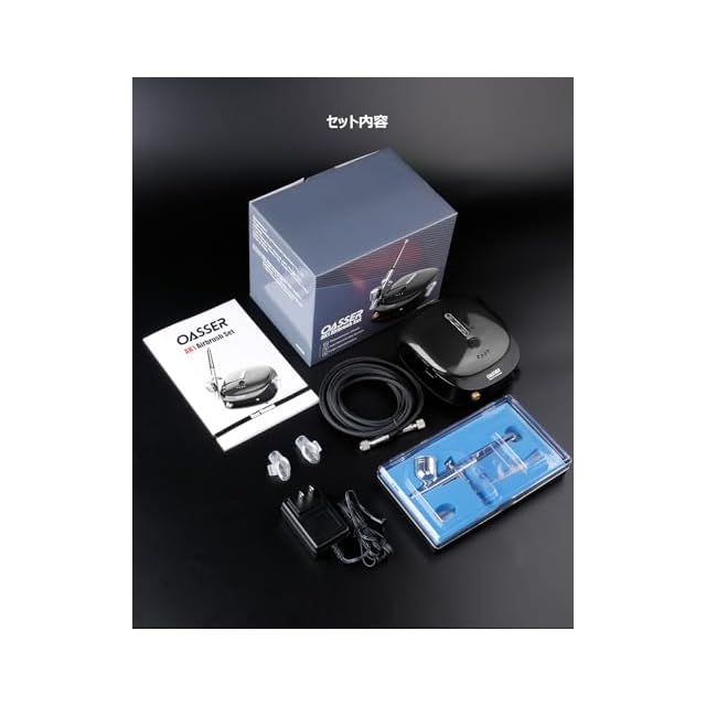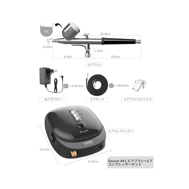 Oasser エアブラシ セット ミニコンプレッサー 充電式 1000mAh電池やAC電源アダプタ兼用 ダブルアクション 重力式 2-15psi三段階圧力調節 プラモデルの塗装 ボディーアート 塗装用具 持ち運びやすい 初心者向け AK1 (ブラック) | つむぎ屋