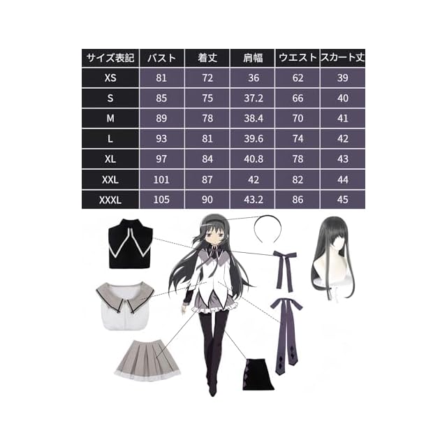 color:暁美ほむら 衣装 ウィッグ付き size:3XL: