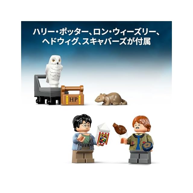 キャラクター4体が付属 – ハリー・ポッターとロン・ウィーズリーのミニフィギュア、ヘドウィグとスキャバ-ズのどうぶつフィギュアは、列車内に飾れます