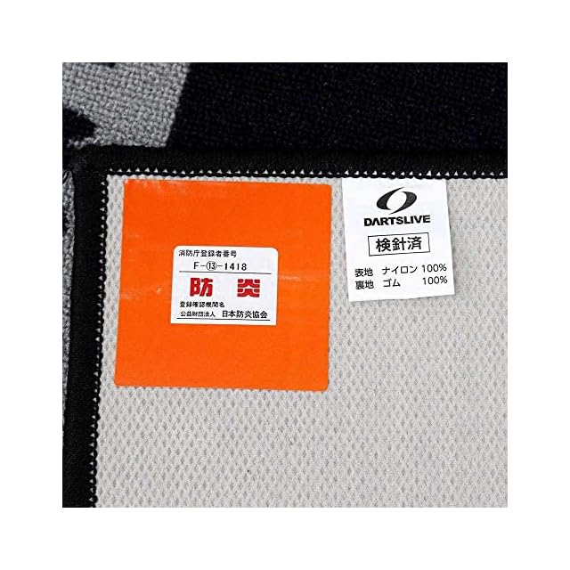 ■DARTSLIVE3 防炎ラベル付 DARTSLIVEスローマット|サイズ:横275.0cm×縦90.3cm| 素材:表面…ナイロン 裏面…ゴム ※ダーツマットは日本防炎協会の防炎性能試験に合格した防炎製品です。 防炎ラベルを譲渡したり融通することは禁じられています。