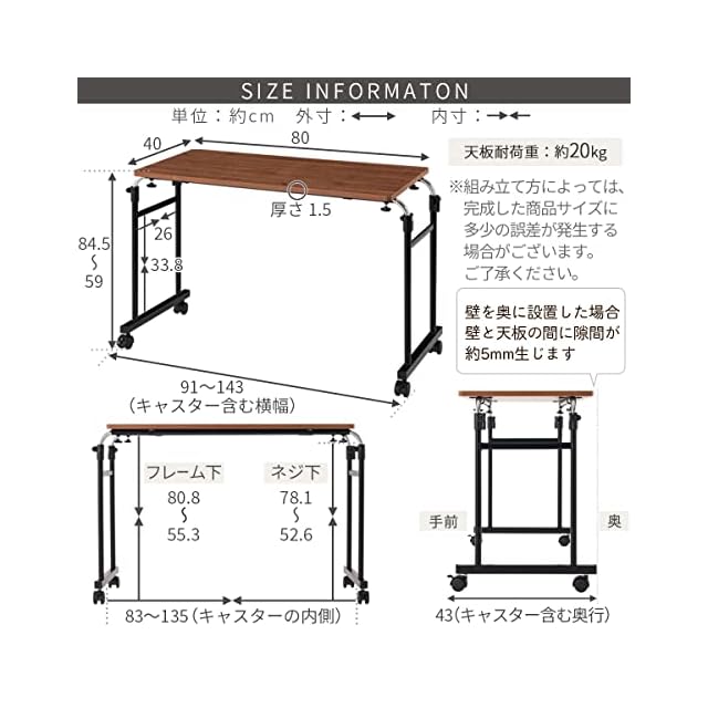 商品サイズ:幅910~1430×奥行430×高さ590~845 / 商品重量:約6.5kg
