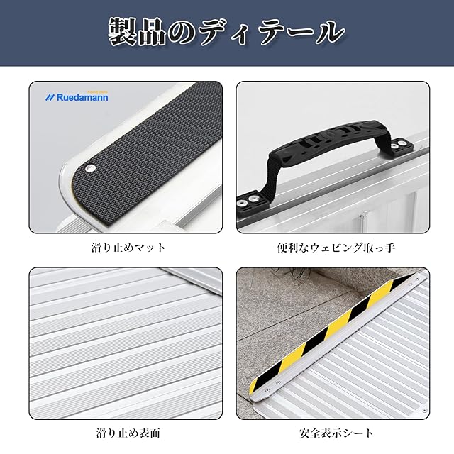 完全に段差解消:長いテールプレートにより、接触面積が大きくて、車椅子がもっと簡単に登れます。独自設計のアップグレードされたサイドチューブにより、サポート力が向上し、使用中の製品の安定性が強化されます。