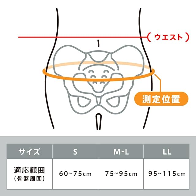 サイズ:S(骨盤周囲 60~75cm)、M-L(骨盤周囲 75~95cm)、LL(骨盤周囲 95~115cm)