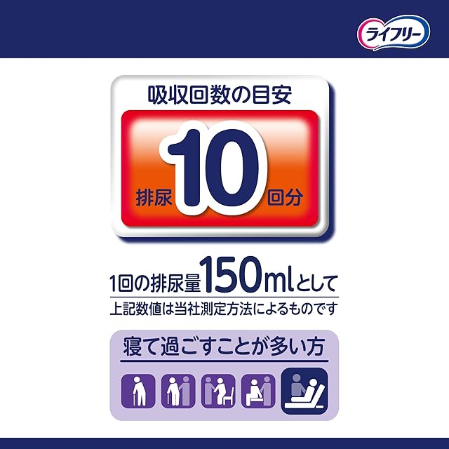 長さ60㎝×巾28㎝ 吸収回数の目安※排尿10回分 ※1回の排尿量150mlとして(当社測定方法によるものです)