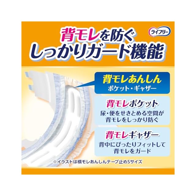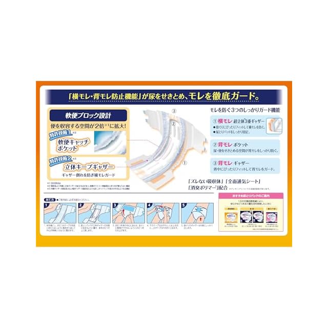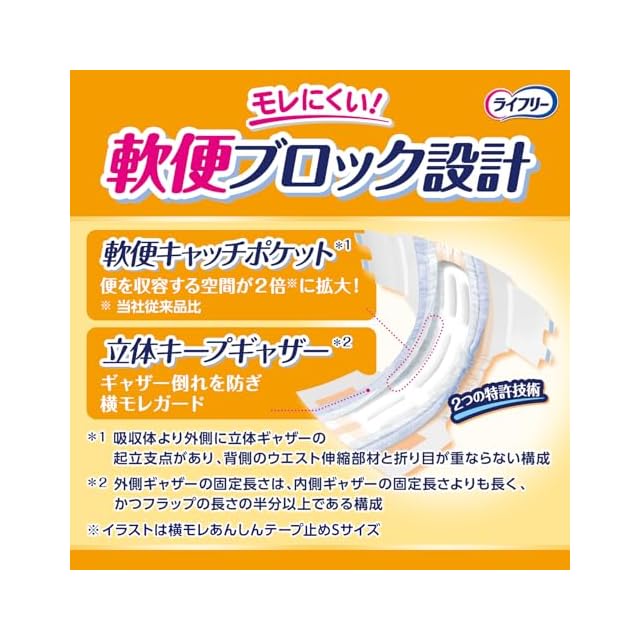 「軟便ブロック設計」が、尿・便を収容しギャザー倒れを防ぎ横モレをガードします。