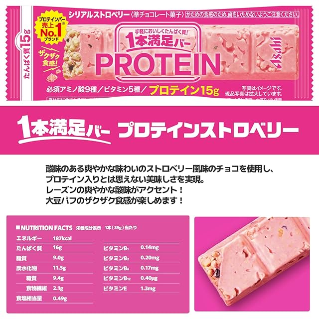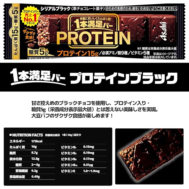 【セット内容】 1本満足バー プロテイン チョコ 39g × 9本、一本満足バー プロテイン ホワイト 39g × 9本、一本満足バー プロテイン ストロベリー 39g × 9本、一本満足バー プロテイン ブラック 39g × 9本