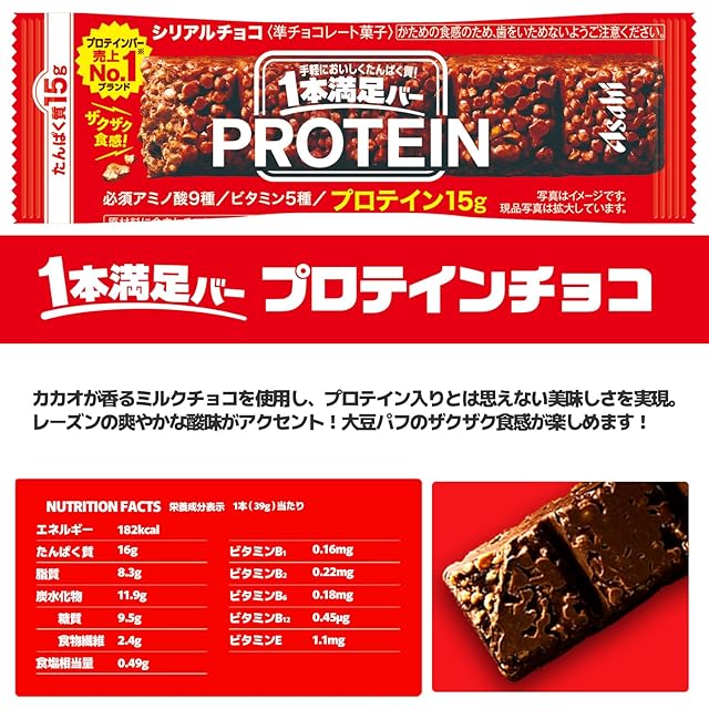 1本でからだ満足!たっぷりたんぱく質のシリアルチョコバー。プロテイン15g配合。