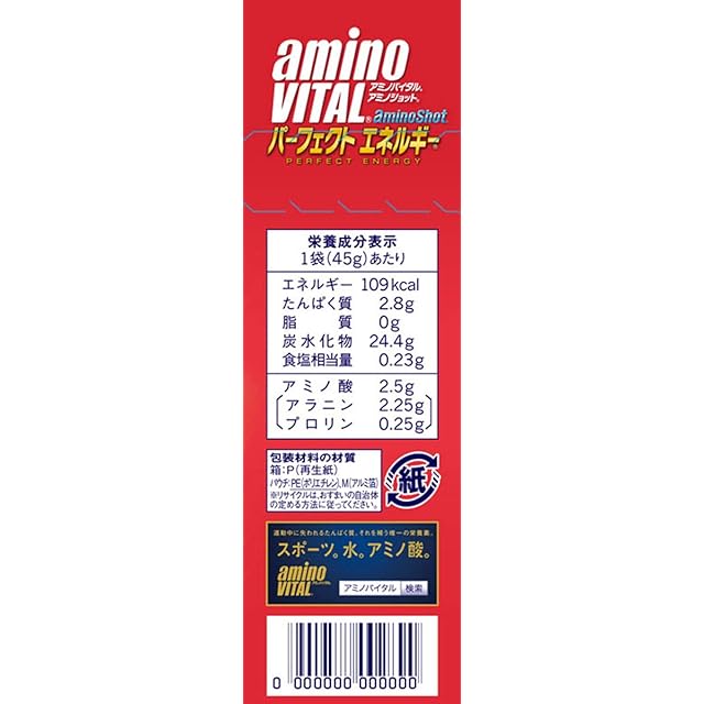 【1袋(45g)あたり】 エネルギー:109kcal、たんぱく質:2.8g、脂質:0g、炭水化物:24.4g、食塩相当量:0.23g、アミノ酸:2.5g(アラニン:2.25g、プロリン:0.25g)