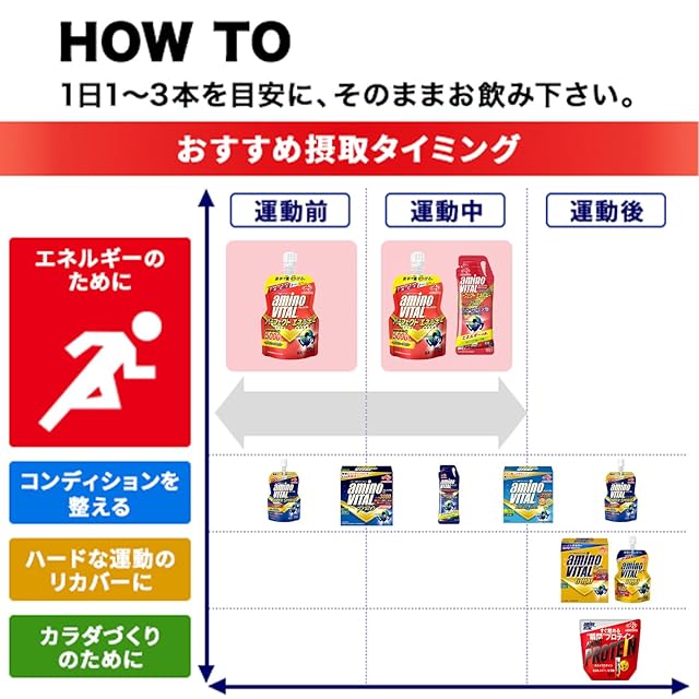 持続性エネルギー源アミノ酸(アラニン+プロリン)2500mgと糖質を配合し、片手で開封と接種が可能な小容量ゼリーです。