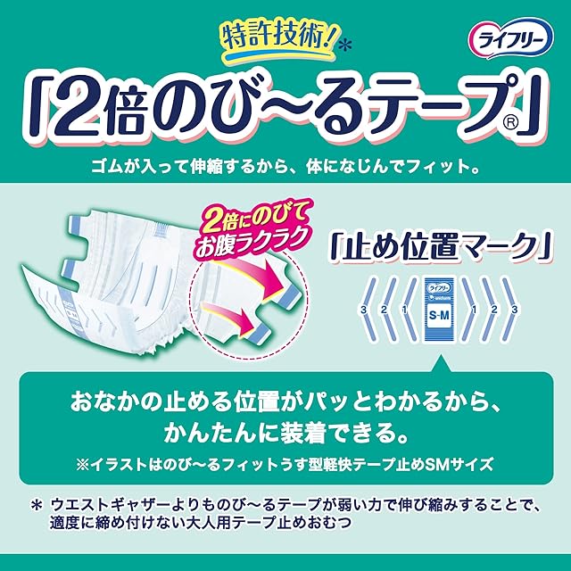 S〜Mサイズ ヒップサイズ56〜106cm 吸収回数の目安※排尿2回分 ※1回の排尿量150mlとして(当社測定方法によるものです)