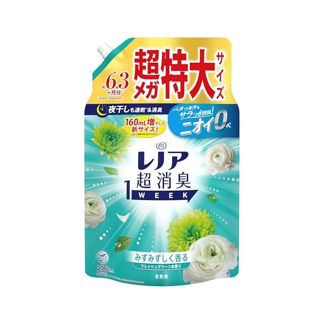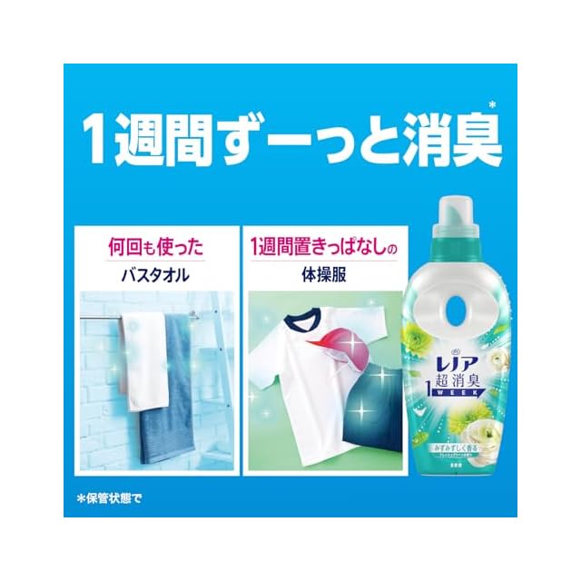 レノア超消臭1WEEKは、80%以上の消費者が実感した、1週間ずーっと続く消臭力(*1)。 かけっぱなしの洗面所のタオルや、ニオイが気になるけれど毎日は洗えない、シーツや枕カバーまで、1週間ずーっと爽やか(*1)。 *1 保管状態で