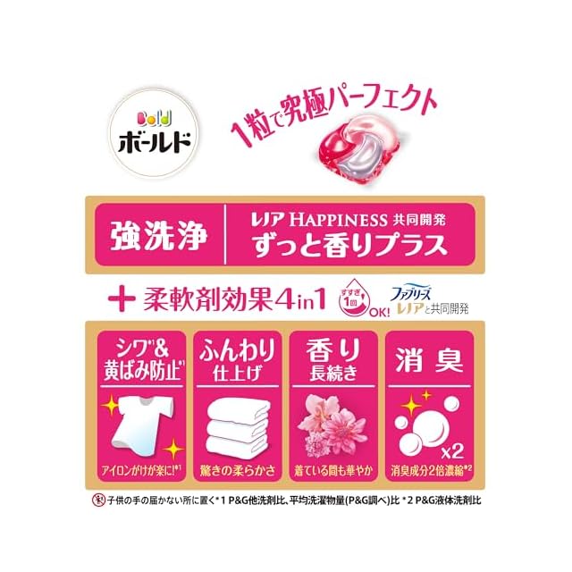 ボールドジェルボールは4つの柔軟剤成分が1粒に配合 消臭・ふわふわ・香り・シワ&黄ばみ防止