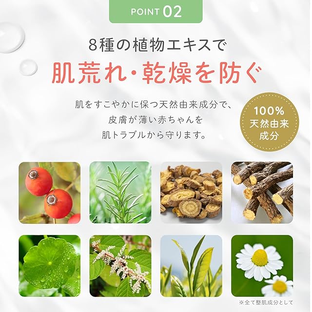 【 高保湿でしっとりもちもち肌へ 】ベビーローションはホホバオイルやシアバターなど皮脂に近い天然の高保湿成分をたっぷり配合。赤ちゃんの肌をもちもちに保湿します。また8種の天然由来成分が、肌をすこやかに保ちます。 0歳の赤ちゃん(新生児)からこども、敏感肌の大人の方までご家族でお使いいただけます。