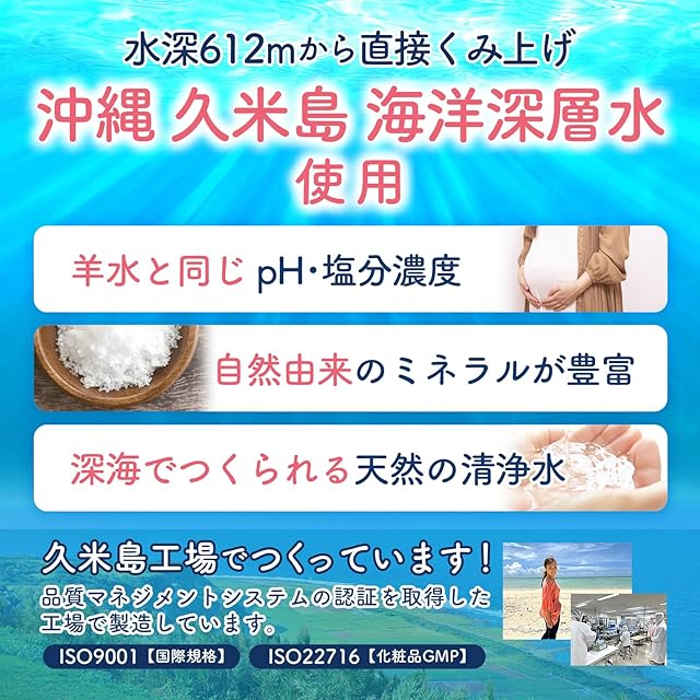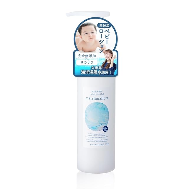 【 羊水 とほぼ同じ 弱アルカリ性 ・久米島海洋深層水を使用】 高保湿 ベビーローション 「マシュマロ」は 新生児 から使用できる 無添加 処方。原材料の一部として使用している久米島海洋深層水は、肌の潤いを守りながら、健やかな肌をサポートしてくれるミネラルを、表層水の数十倍も含んでいます。水深600メートル以上の深海から組み上げている深層水は、太陽の光が届かず水温も10℃で安定した環境にあり、飲料水としても健康や美容に愛されています。(栄養塩分濃度0.85%、PH7.3程度)