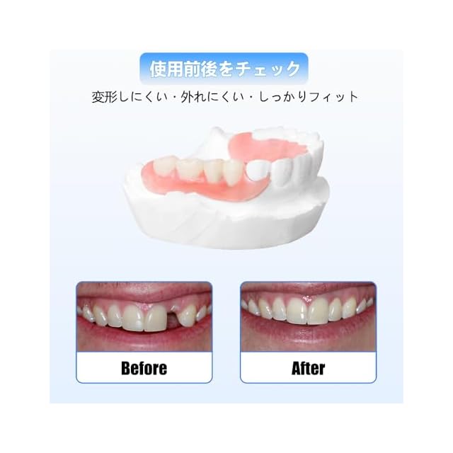 【本数が選べる・ぴったりフィットのカスタマイズ】入れ歯は1本で、自分にぴったり合ったスタイルでオーダーメイドが可能です。自然な見た目で違和感が少なく、お口にしっかり馴染みます。 ※ご注意:本ページは「1本」のご注文専用です。2本以上をご希望の方は、ご購入前にカスタマーサービスまでお問い合わせください。