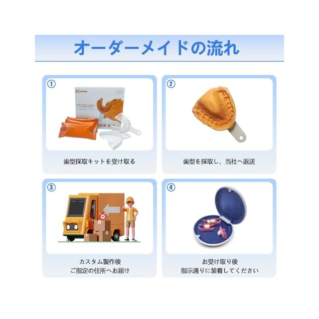 【自宅で簡単に歯型採取】DIYキットで、上顎・下顎の形に合った歯型を採取。ご返送いただいた型をもとに、専門の工房であなたにぴったりの入れ歯をお作りします。