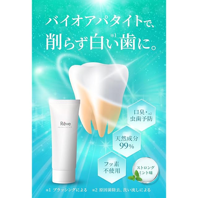 レーヴ(Rêve)ホワイトニング歯磨き粉 フッ素不使用 天然由来成分99% 【Allbe Natural Tooth Gel Ⅱ 65g】 研磨剤不使用 ジェルタイプ バイオアパタイト 口腔ケア 電動歯ブラシ対応 | つむぎ屋