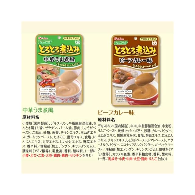 ✅かむ力や飲み込む力が弱くなった方に向けて、具材をすりつぶし、とろとろになるまで煮込んだ、ペースト状のレトルト介護食シリーズです。