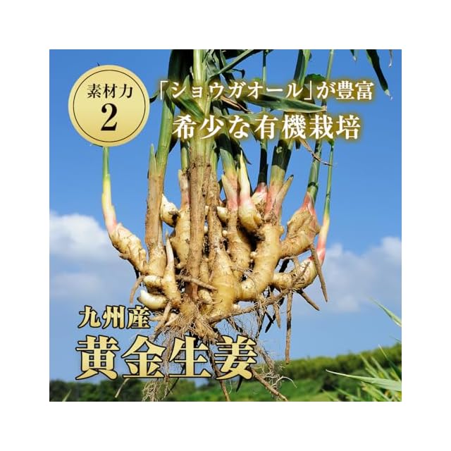 【九州産 黄金生姜】約500種類もの品種が存在している生姜から厳選した「黄金生姜」。切ると鮮やかな黄金色をしており一般的な生姜に比べて辛味や香りが強いのが特徴です。〈にんにく生姜〉は製造工程の中で「黄金生姜」を加熱させているので、そのパワーをしっかり引き出しています。