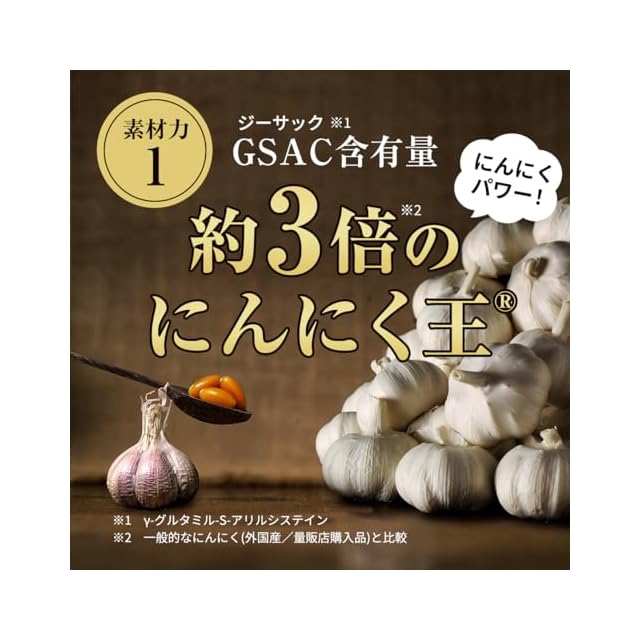 【〈有機にんにく王〉使用】「健康のために口にするものは、素材自体が健康でなければならない」という創業者の信念から国産の有機にんにくを使用。アリシンなどの元となるにんにくパワー成分「GSAC※」が豊富に含まれています。※γ-グルタミル-S-アリルシステイン