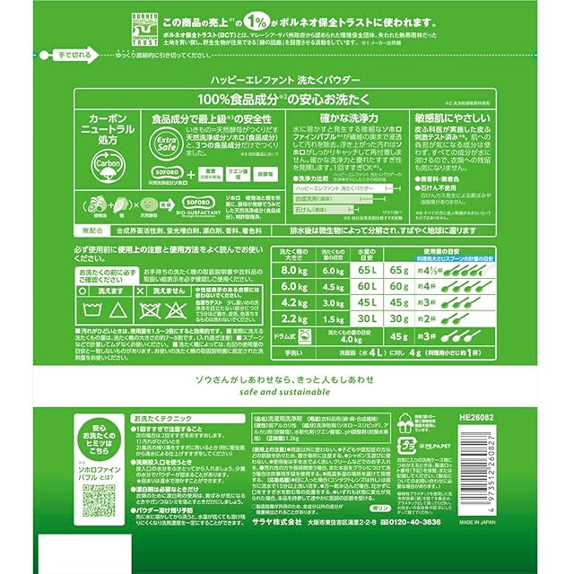 商品名:Happy Elephant サラヤ 洗たくパウダー 無香料 ハッピーエレファント 1.2kg
