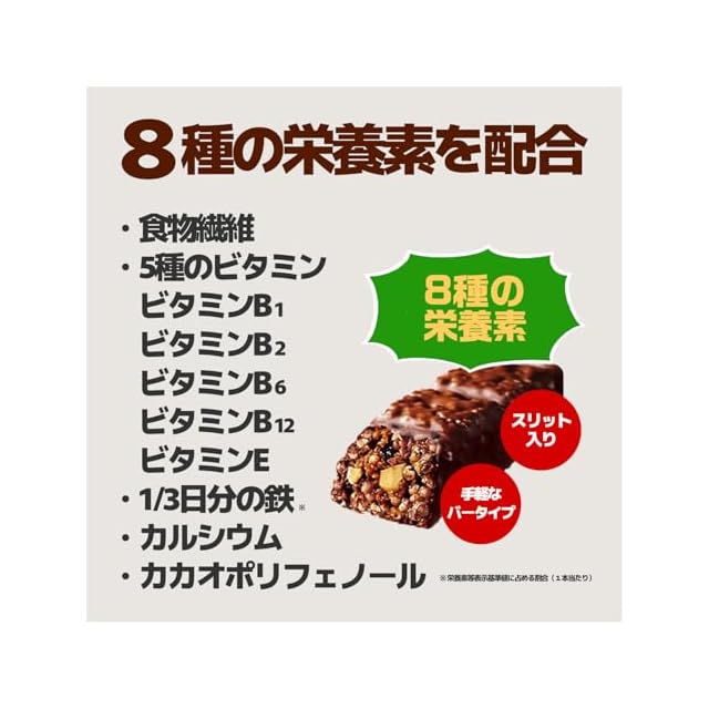 栄養素が手軽に摂れるボリュームたっぷりのチョコレートバー。間食・おやつニーズを満たすシリアルチョコレートバーです。