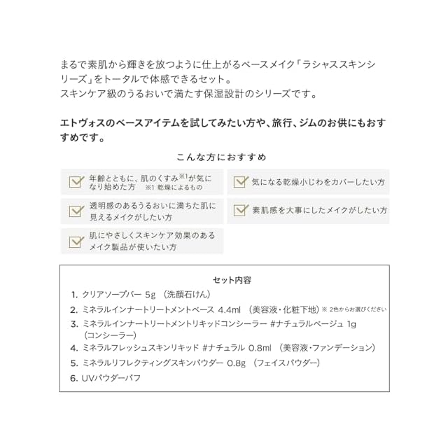 エトヴォス ラシャススキンベースメイクファーストキット #ラベンダーベージュ [お試しセット/クレンジング不要/石けんオフ/ミネラルファンデーション/下地/仕上げパウダー/石けん/ミニサイズ/トラベル]