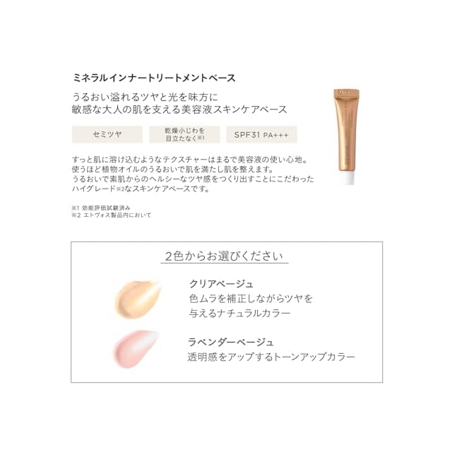 【base ミネラルインナートリートメントベース】うるおい溢れるツヤと光を味方に 敏感な大人の肌を支える美容液スキンケアベース