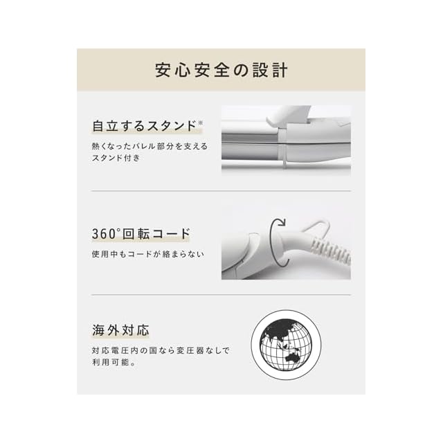 【スタンド】 使用中、使用後の熱くなったバレル部分を支える便利なスタンド付きです。