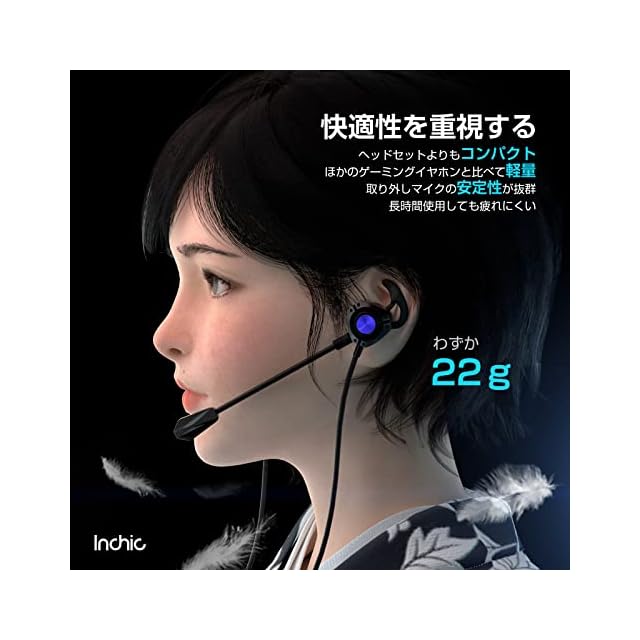 「2種類マイク付きイヤホン」inchicのゲーミング イヤホンはインラインマイクだけではなく取り外しできる高感度マイクも搭載し、しっかりと自分の声だけを拾ってくれるので、大きな声が出せない環境でも使えます。FPSで細かな足音や銃声を聞きつつ、ボイスチャットで離れた仲間とも臨場感たっぷりにゲームをプレイすることが可能。テレワーク(リモートワーク)でも便利に使うことができます。