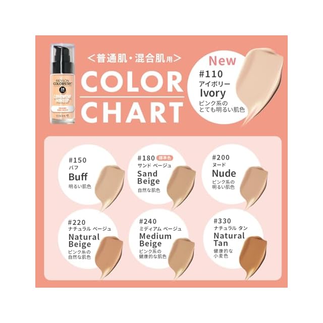 24時間* 落ちにくい リキッドファンデ 普通肌・混合肌用 *レブロン研究所調べ(個人差がある場合があります)