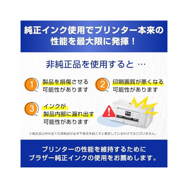 非純正インクをお使いになりますと製品本体の性能を十分に発揮できないだけでなく製品本体を損傷させる可能性がありますのでご注意ください。