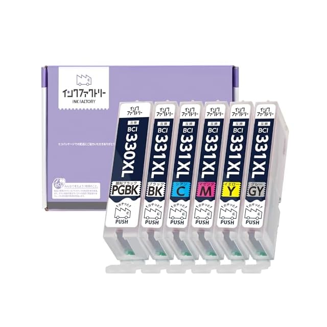 【大容量サイズ】Canon 用 互換インクカートリッジ BCI-330XL / BCI-331XL 6色セット [ BCI-330XLPGBK / BCI-331XLBK / BCI-331XLC / BCI-331XLM / BCI-331XLY / BCI-331XLGY ] グレーを含む6色、各1本 全6本