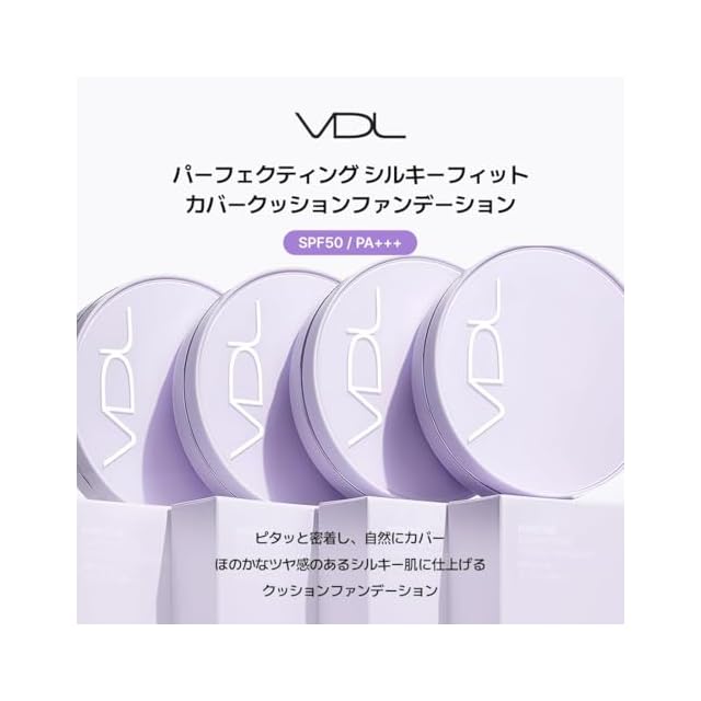 VDL(ブイディーエル) パーフェクティング シルキーフィット カバー クッションファンデーション A02 (標準色 明るめのオークル) クッションファンデ ツヤ感 透明感 崩れない 12g SPF50 PA+++ | つむぎ屋