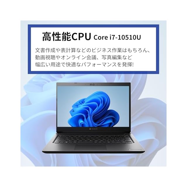第10世代CPU【i7-10510U】高速処理とパワフルなパフォーマンス。 コア数が増えたことで、複数のアプリを同時に使用する際もスムーズに動作し、快適な作業環境を実現します。