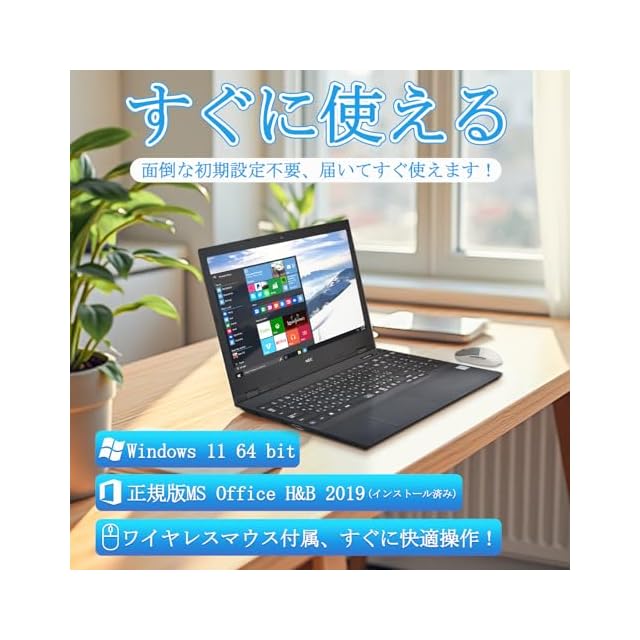 【整備済み品】NEC ノートパソコン VKM16/VKT16 15.6型 第8世代Core i5-8265U(最大動作3.9GHz) /Windows11 Pro/MS Office2019/WIFI内蔵/Webカメラ/DVD-ROM/テンキー/Bluetooth/HDMI/Type-C(Corei5-8265U,メモリ8GB,SSD256GB) | つむぎ屋