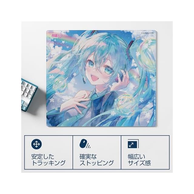 Wallhack × 初音ミク ガラス製ゲーミングマウスパッド – コラボエディション SP-004|Summer Mikuデザイン|プロ向けスピード系表面(強化ガラス)|49×43cm 大型サイズ | つむぎ屋