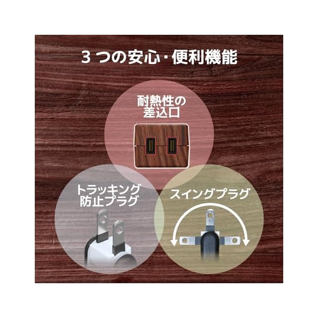 差込口に耐熱性に優れたユリア樹脂を使用し、万一の発熱の際にも融解しにくく、電気火災の防止に有効です。