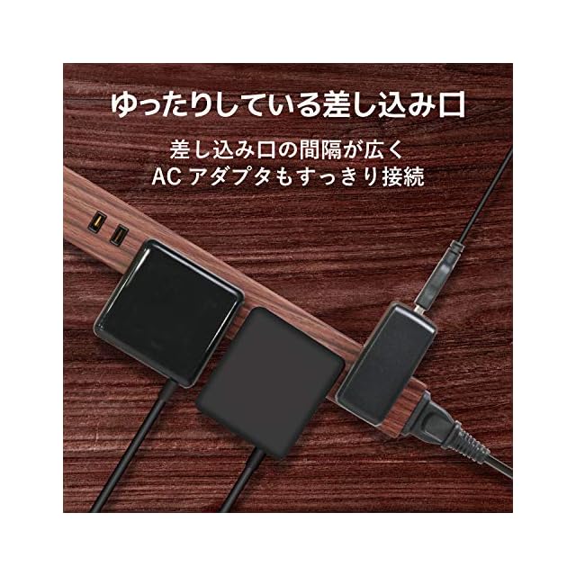 タップの差込口の間隔が約58mmと通常のタップと比較して広く、ACアダプタもすっきり接続可能です。