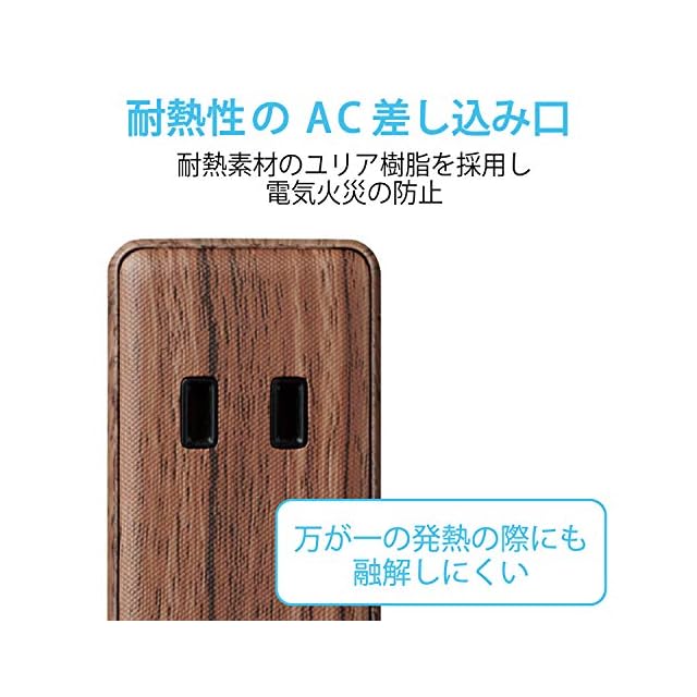 AC差込口には、万一の発熱の際にも融解しにくく、電気火災の防止に有効な耐熱性樹脂を使用しています。