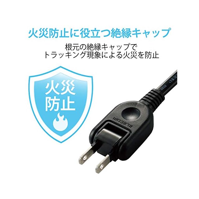 2ピン式のACプラグ根本には絶縁キャップがついており、トラッキング現象による火災の防止に役立ちます。