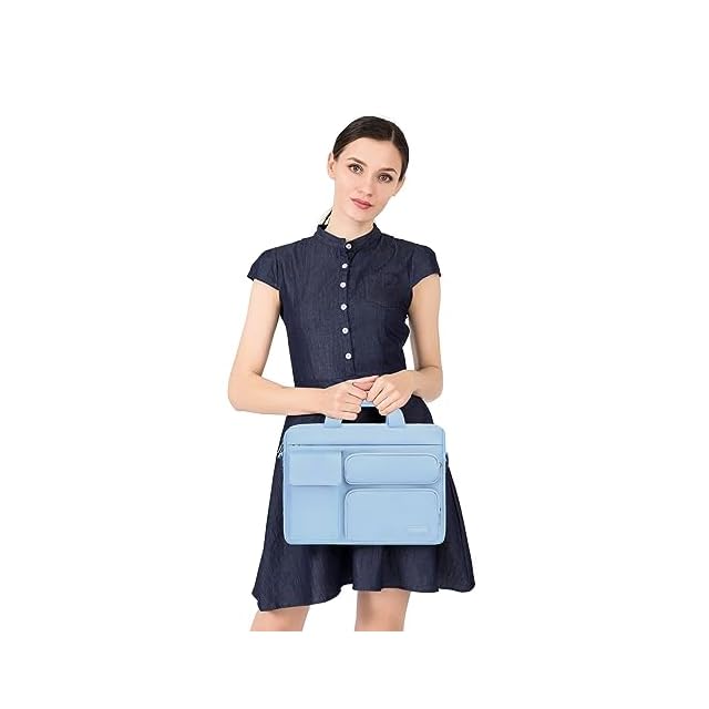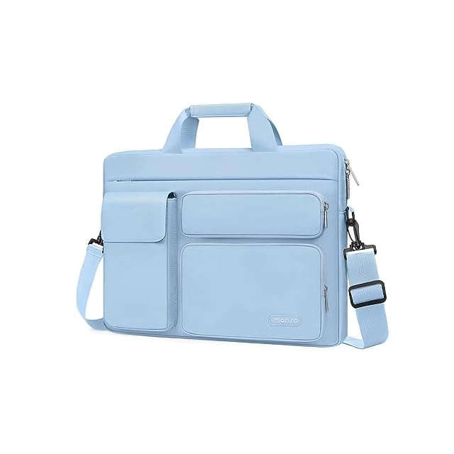 [MOSISO] ラップトップ ショルダー メッセンジャーバッグ、対応機種 MacBook Air/Pro、13-13.3 インチ、対応機種MacBook Pro 14 インチ、二つ盛り上がるポケット&一つフラップポケット&一つ水平ポケット&フィックス ハンドル&ベルト付き(エア ブルー) | つむぎ屋