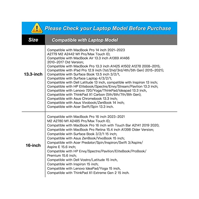 対応機種 MacBook Pro 14 インチ 2025-2021 M4 A3112 A3185 A3401 M3 A2918 A2992 M2 A2779 M1 A2442 Pro/Max Touch ID付き、対応機種 MacBook Air 13 インチ A1369 A1466 2010-2017、対応機種 MacBook Pro 13 インチ A1425 A1502 A1278 2008-2015、対応機種 Surface Book 3/2/1 13.5、対応機種 Surface Laptop 4/3/2/1 13.5、対応機種 Dell Latitude 14、対応機種 HP Elitebook 13.3/Spectre X360 13.3/Envy 13/Stream 13/Stream 14/Pavilion 14、対応機種 Lenovo ThinkPad X1 Carbon、対応機種 Lenovo IdeaPad 13/14。