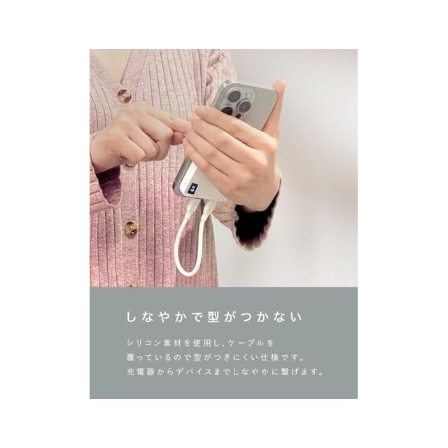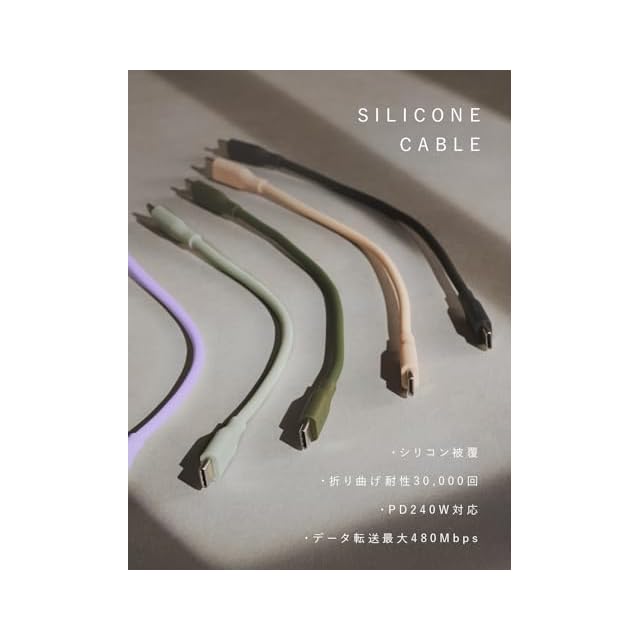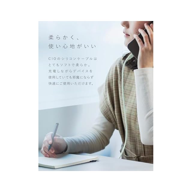 外装にシリコン素材を使用したことで、従来のケーブルにはない柔らかい質感を実現しました。優しい使い心地をご体感ください。カバンやポケットに入れても絡みにくく、出し入れもスムーズに行えます。折り癖や巻き癖が付きにくいため、いつでもストレスフリーにご使用いただけます。