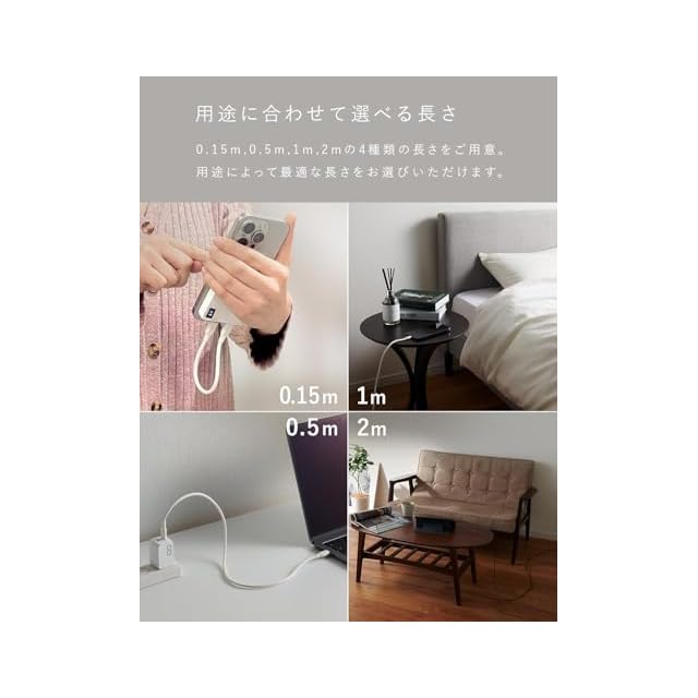 モバイルバッテリーとスマホの重ね持ち充電に最適な長さ(ケーブル長15cm)です。