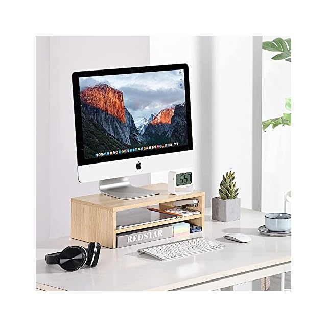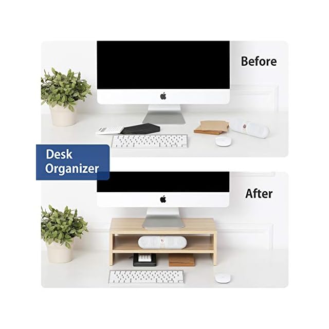 【人体工学設計&猫背対策・作業率アップ】机上ラックにモニターを載せることで目線が約11.6cm高くなり、自然と首や背筋が伸びるようになります。ヘルシーなワーク姿勢を維持し、テレワークの作業効率も上がります。