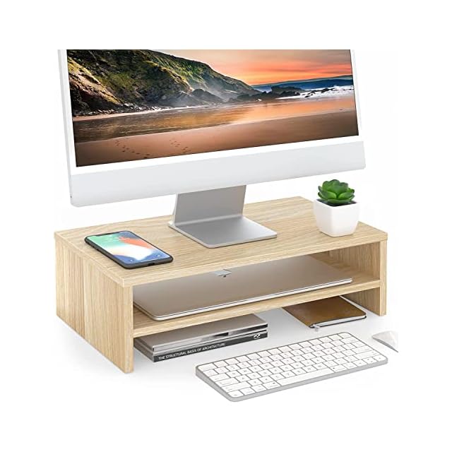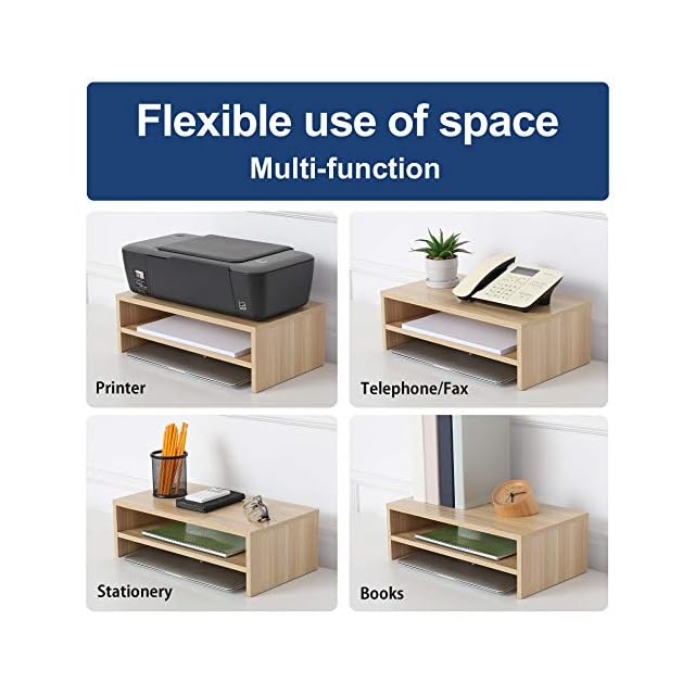 【デスク周りにスッキリに】卓上モニター台は2段式で物事ごとに分類に収納できます。キーボード・マウスの周辺機器はもちろん、書類、タブレットをすっきり整理できます。