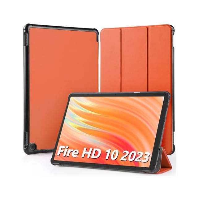Hianjoo Fire HD 10 2023 対応 ケース 10インチ タブレットケース Fire HD 10 第13世代 対応 カバー スタンド機能付き オートスリープ機能 全面保護ケース 耐衝撃 擦り傷防止 - オレンジ | つむぎ屋