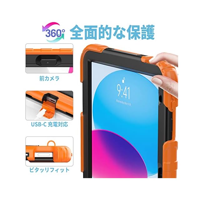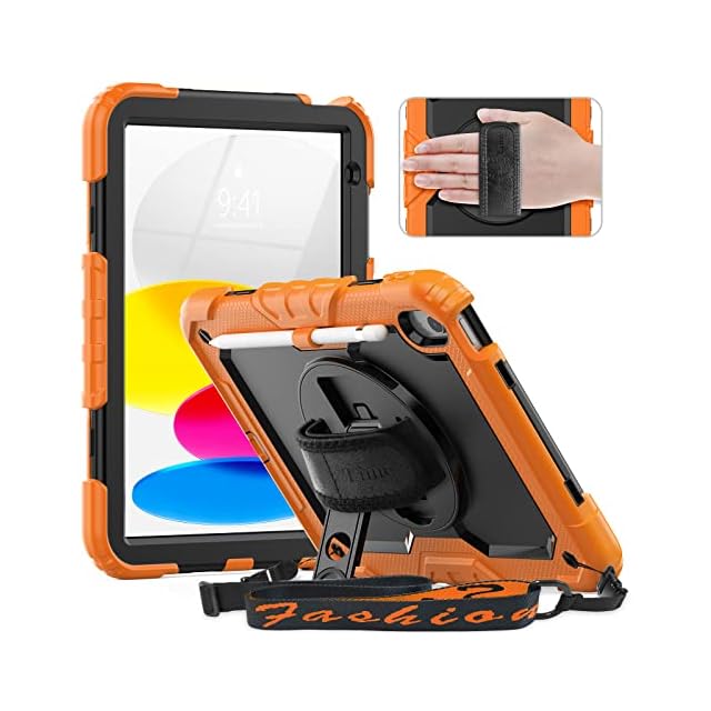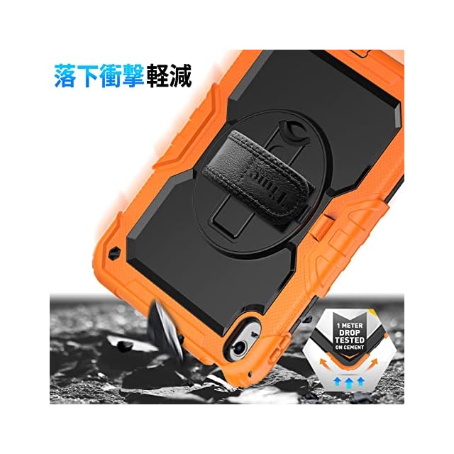 Timecity iPad 第11/10世代 ケース (2025/2022)対応 耐衝撃 iPad 11世代/ 10世代 ケース 360度回転スタンド 保護フィルム付き 傷つけ防止 頑丈 耐久性 ハンド&ショルダーストラップ付き ペン収納 肩掛け 多機能 工事 現場 子ども iPad 10.9インチ カバー 落下保護 1メートルテスト (オレンジ) | つむぎ屋