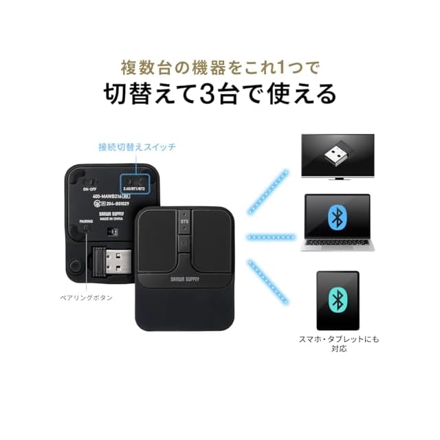 合計3台の マルチペアリング に対応し、USB Aレシーバー×1台、 ブルートゥース ×2台の 接続 を切り替えて使えます。 Bluetooth接続 に対応するのでiPhoneやiPad、Android タブレット や スマホ などでも使用できます。